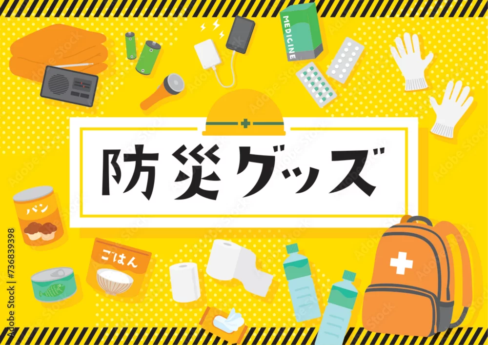 防災グッズのテンプレート背景